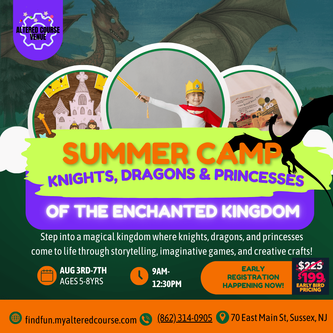 Knights, Dragons & Princesses of the Enchanted Kingdom Dates: August 3–7 | Ages: 5–8 Step into an enchanted kingdom where knights, dragons, and princesses come to life! In this interactive storytelling camp, kids bring characters to life through imaginative play, laughter, and collaboration. Led by our lively instructor, campers will: Act out silly and magical […]